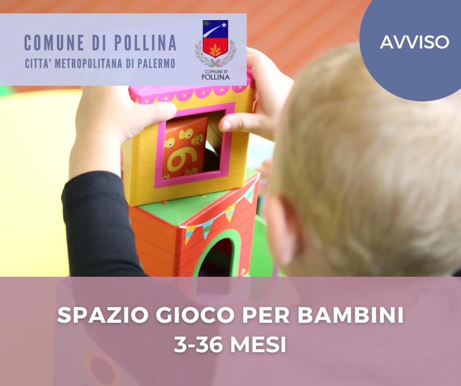 Questo Ente, nell’ambito dei trasferimenti per il potenziamento del servizio degli asili nido e servizi per l’infanzia per la fascia di popolazione 3-36 mesi intende promuovere i servizi educativi per l’infanzia e in particolare, attivare uno spazio gioco per bambini di età compresa tra i 3 ed i 36 mesi, residenti presso il Comune di Pollina.